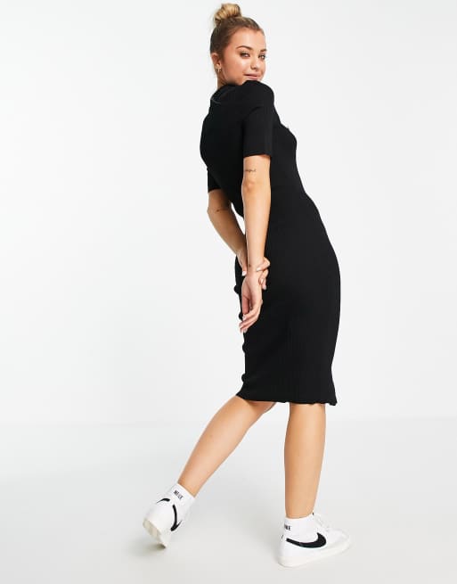Black Rib Short Sleeve Collar Button Down Midi Dress Dresses Midi Dress I Saw It First